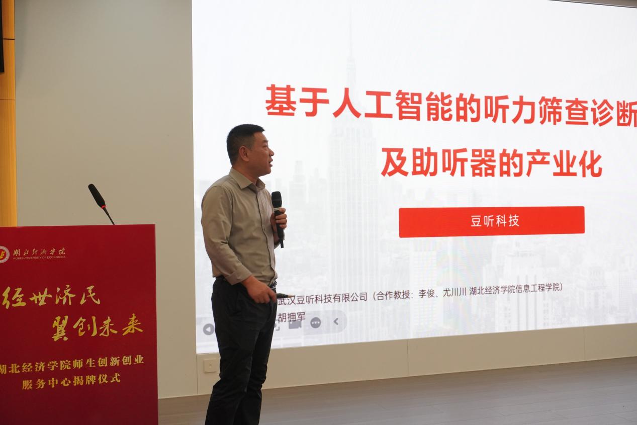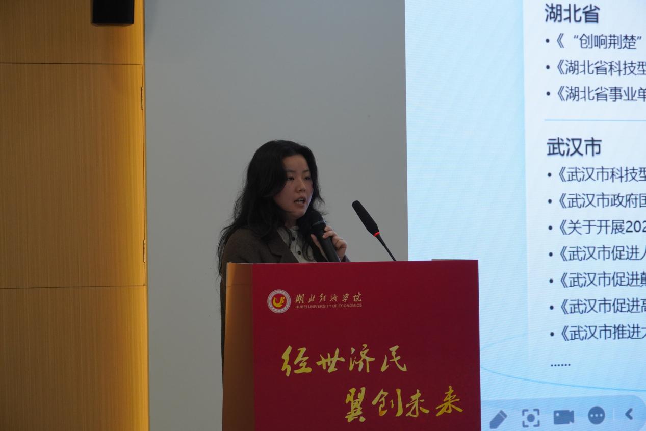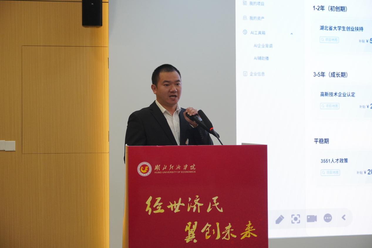湖北经济学院科技创新发展研究院负责人介绍了师生创新创业服务中心的建设情况、发展思路和未来规划。据介绍,该中心作为武汉市第6家高校师生创新创业服务中心,将聚焦体制机制、服务模式、协同联动三大创新突破,激发师生创新活力;打造线上线下融合服务平台,线上对接省、市级科创服务平台,线下组建专业技术经理人队伍,提供从创意评估到产业落地的全生命周期“保姆式”服务,携手政府、企业和投资机构,围绕数字经济、绿色低碳、低空经济等优势领域,打造全链条双创服务体系,力争到2028年实现累计成果转化50项以上、孵化师生创业企业20家以上。