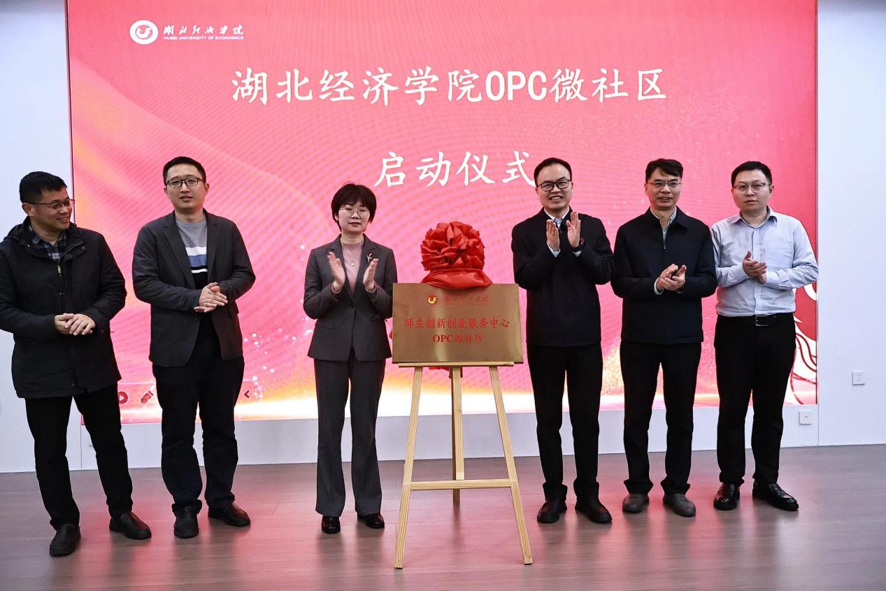 张忠民与市科技创新局、江夏区经科局领导共同为“湖北经济学院师生创新创业服务中心”揭牌并启动“湖北经济学院OPC微社区”。